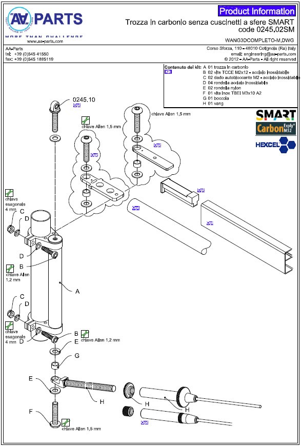 Completa del vang in Ergal 7075 T6 regolabile anodizzato nero nella versione standard o slim line (in opzione) del peso di soli 6 grammi e di accessori di montaggio.