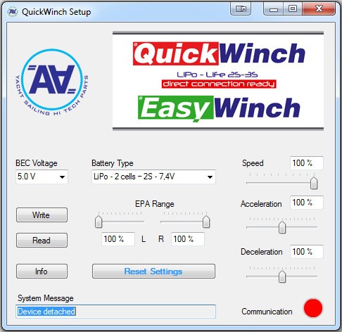 Unità di programmazione QuickWinch - software e cavo di collegamento U.S.B.